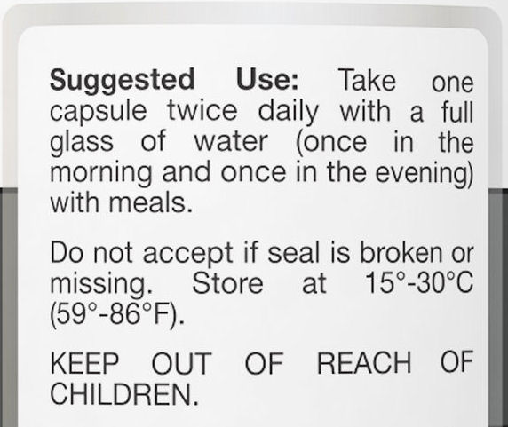 Take one capsule twice daily with a full glass of water (once in the morning and once in the evening) with meals.