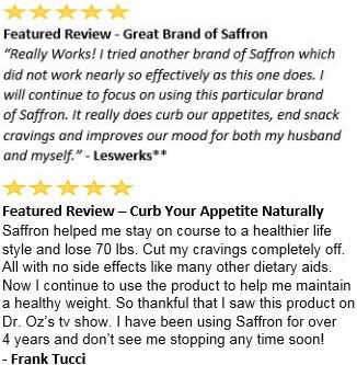 Saffron helped me stay on course to a healthier life style and lose 70 lbs. Cut my cravings completely off. All with no side effects like many other dietary aids. Now I continue to use the product to help me maintain a healthy weight. So thankful that I saw this product on Dr. Oz’s tv show. I have been using Saffron for over 4 years and don’t see myself stopping any time soon!Good Stuff