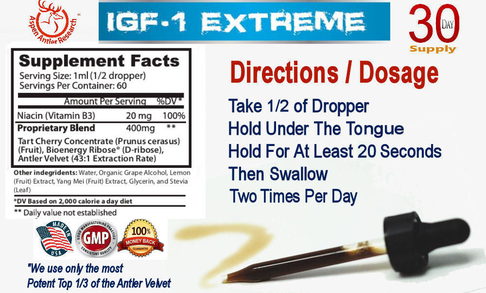 Aspen IGF-1 Extreme Deer Antler Velvet Spray Formula Supplement Facts