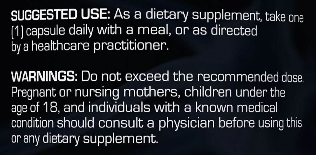 Do not exceed the recommended dosage. Pregnant or nursing mothers, children under the age of 18, and individuals with a known medical condition should consult a physician before using this or any dietary supplement.Keep out of the reach of children. Do not use if safety seal is damaged or missing, store in a cool dry place.