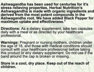 I’ve been taking these Ashwagandha capsules for a short time and I already feel a difference in my stress levels and overall mood. The dosage is strong, and I like that it’s organic and comes in veggie capsules. It doesn’t upset my stomach, and I feel calmer and more focused during the day. The bottle came sealed and fresh. Definitely recommend it if you’re looking for a natural way to manage stress or anxiety.
