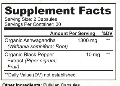 Organic Ashwagandha 1300mg with Black Pepper for Superior Absorption