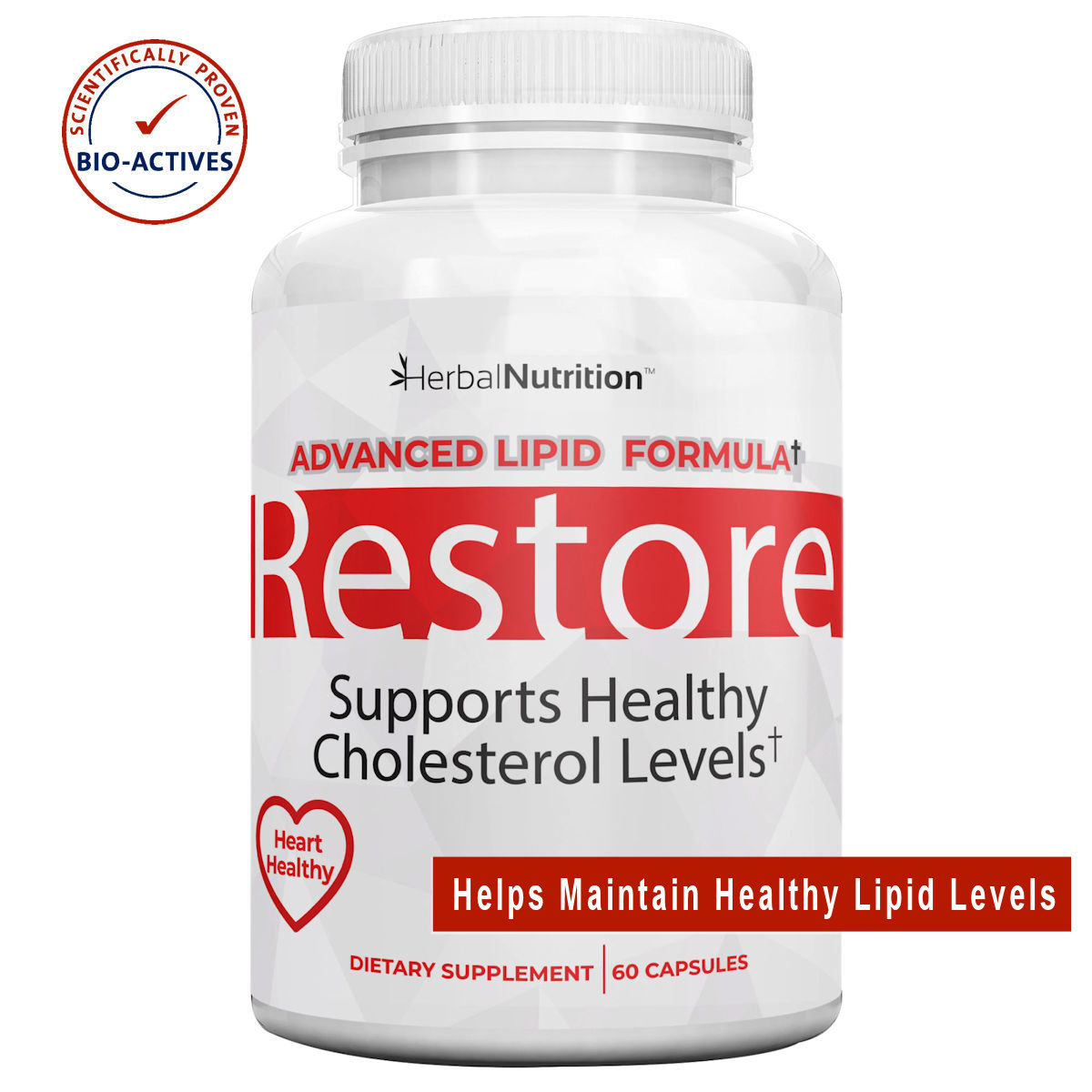 Restore is a proprietary formula, a scientifically formulated lipid support supplement designed to help maintain healthy cholesterol levels.* Built with clinically studied ingredients, this advanced formula supports cardiovascular wellness, healthy lipid metabolism, and long-term heart health.